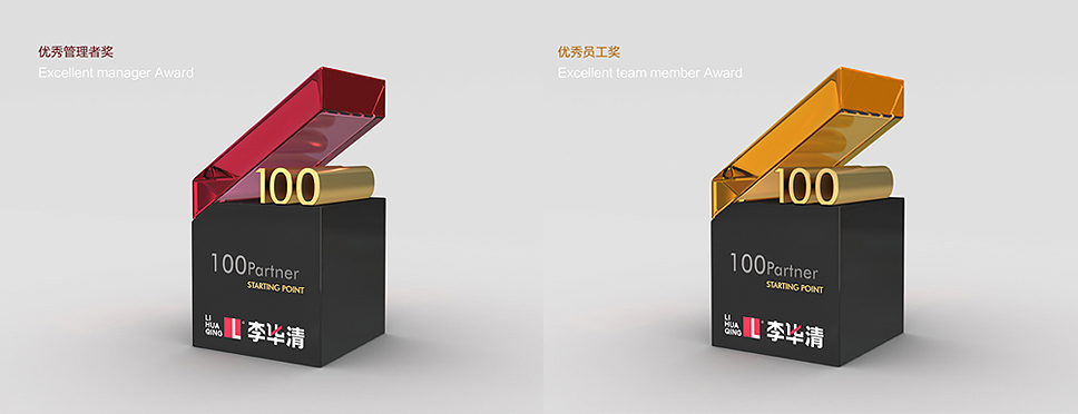 獎(jiǎng)杯的階梯是由下方的100作為支撐,象征平臺(tái)的發(fā)展和進(jìn)取離不開(kāi)100位合伙人的共同努力和付出。